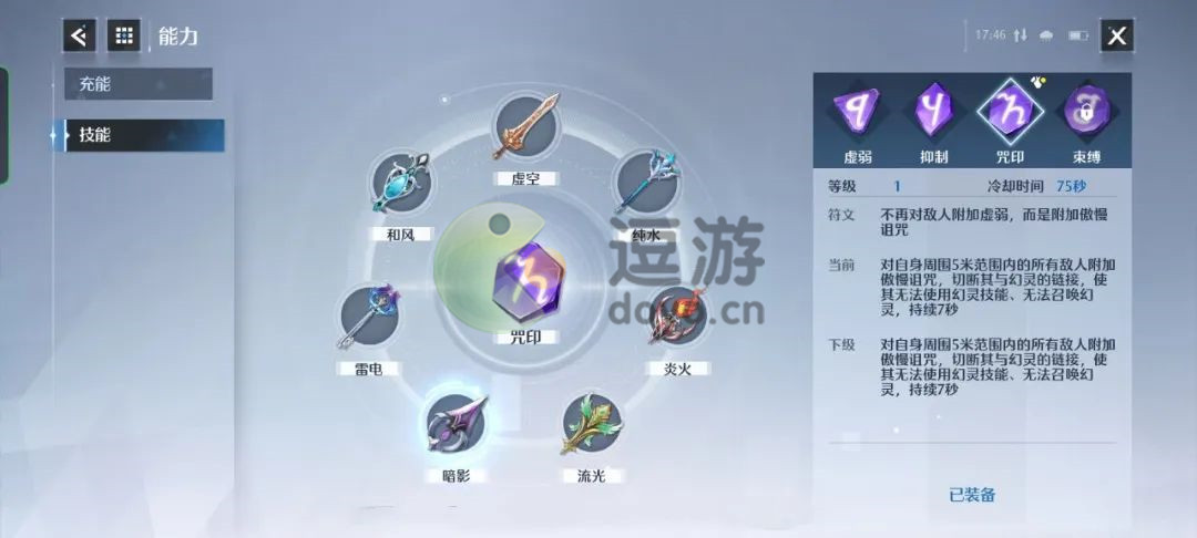 2、暗影的咒印:对敌人傲慢诅咒,切断其与幻灵的连接。(持续7秒)