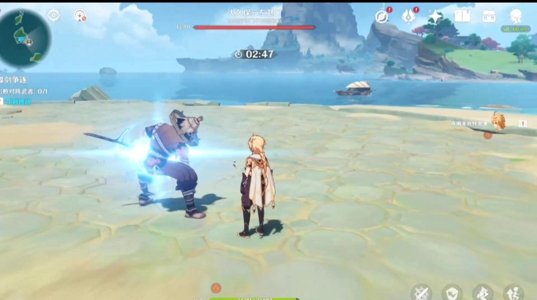 打他我们需要一直平a砍他打断他其他动作,然后注意他举刀动作,默念举刀,1,2,弹,然后平a,持续反复就可以了