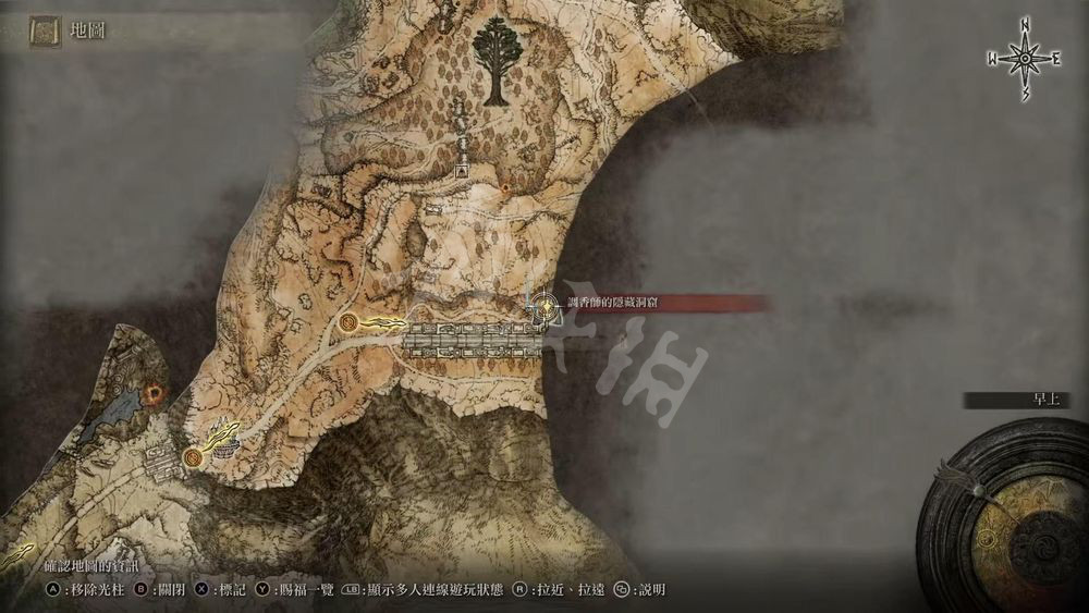 然后从这个神授桥地区,打开地图传送回刚刚的「调香师的隐藏洞窟」。