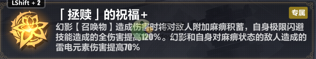 6.【拯赎】的祝福:提高自身极限闪避伤害并提高对麻痹状态敌人的伤害,可以后期补