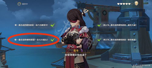 3、这是正确答案,答对一题或全错会去璃月港看北斗谈生意(无难度跟着做就行),全答对后。