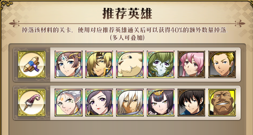 部分关卡使用对应推荐英雄通关,可以获得额外奖励哦!
