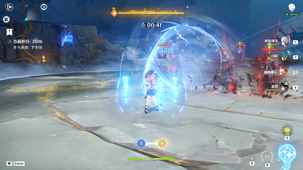 下半场温迪聚怪无限永冻,得分更多,操作比较无脑,可轻松打出1600+积分。