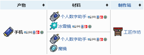 手机可以通过用个人数字助手与冰雪镜或魔镜在工匠作坊处合成获得。