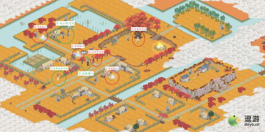 5、以上就是江湖悠悠狐仙庙第三关攻略,图上红色圈圈为主线任务,绿色圈圈为支线任务。需要获得关卡内的所有奖励,即为完美通关。