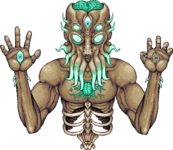 打败石巨人后在地牢入口处会出现四个邪教徒,全部杀死即可召唤出它。