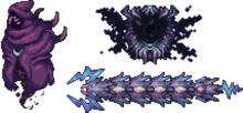 2.一旦玩家拥有 200 或更多 HP、3 个或更多NPC住进房子、且防御力超过 10,那么在每个夜晚开始时有 1/3 (33.33%) 的几率生成它。直到首次打败它为止。
