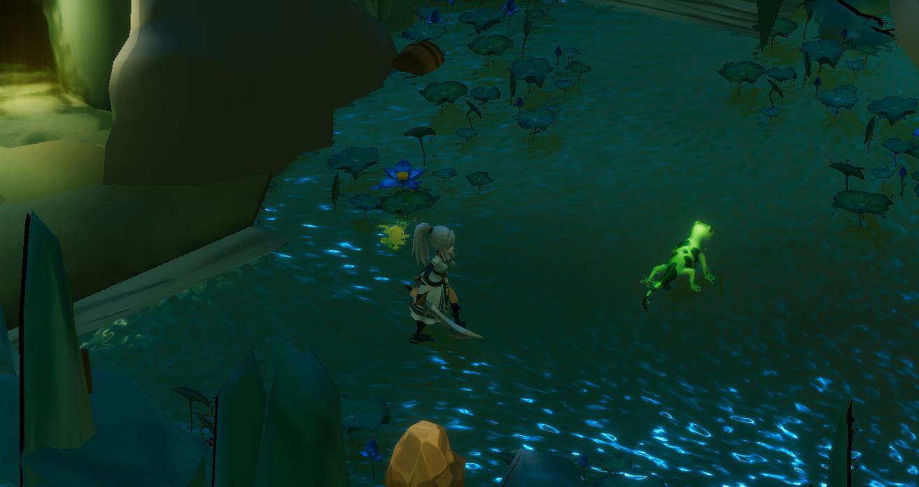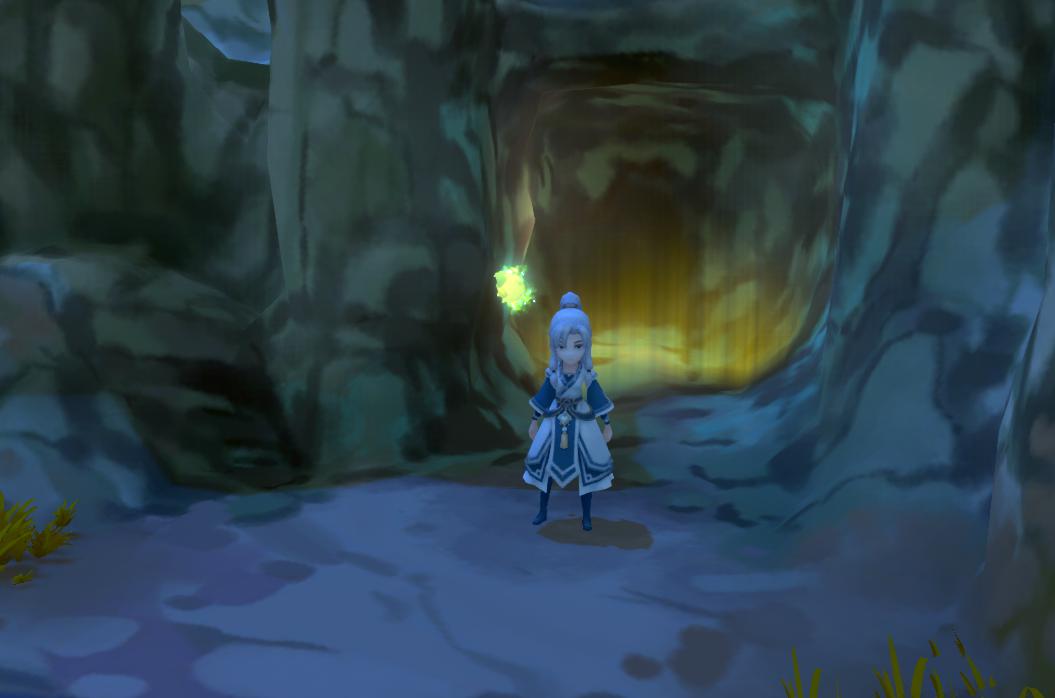 在矿洞中有蜥蜴、蝙蝠、矿石虫、水母等敌人,玩家可按TAB切换战斗状态与这些妖兽战斗,同时有些敌人具有物理免疫的能力需要使用法术进行攻击。