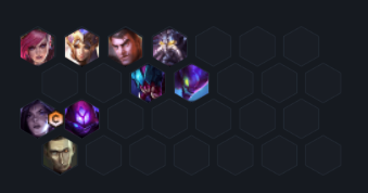 棋子组成:卡莎、卡萨丁、玛尔扎哈、蔚、瑟庄妮、雷克赛、卡兹克、杰斯、希尔科