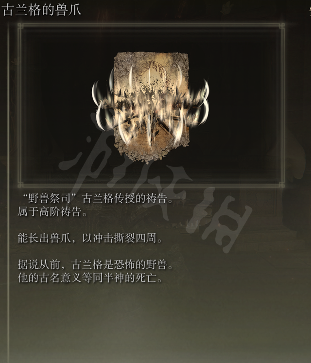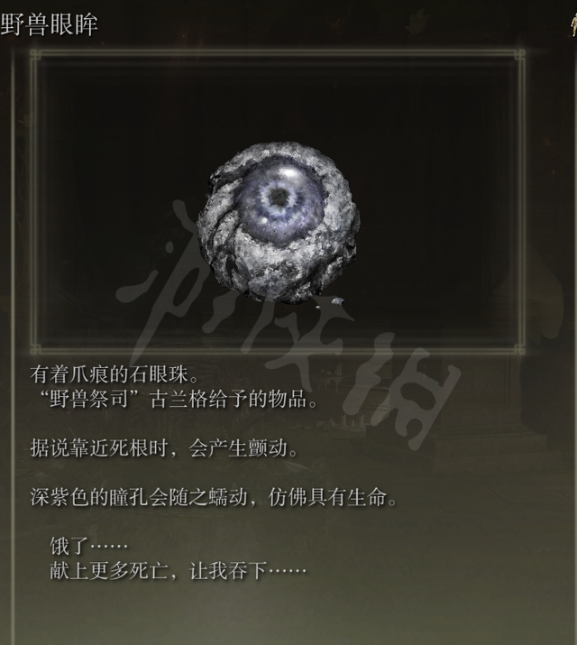 获得护符爪痕圣印记和重要道具野兽眼眸,附近有死根可获得时会弹出文字提示。古兰格支线开启。