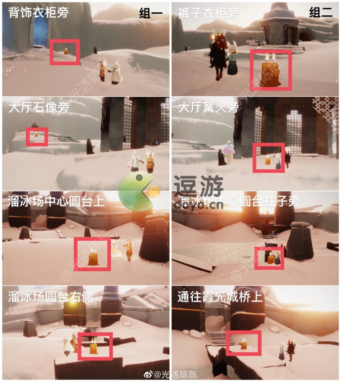 2.图中就是所有的季节蜡烛所在的位置啦,玩家们快去游戏中找找吧!
