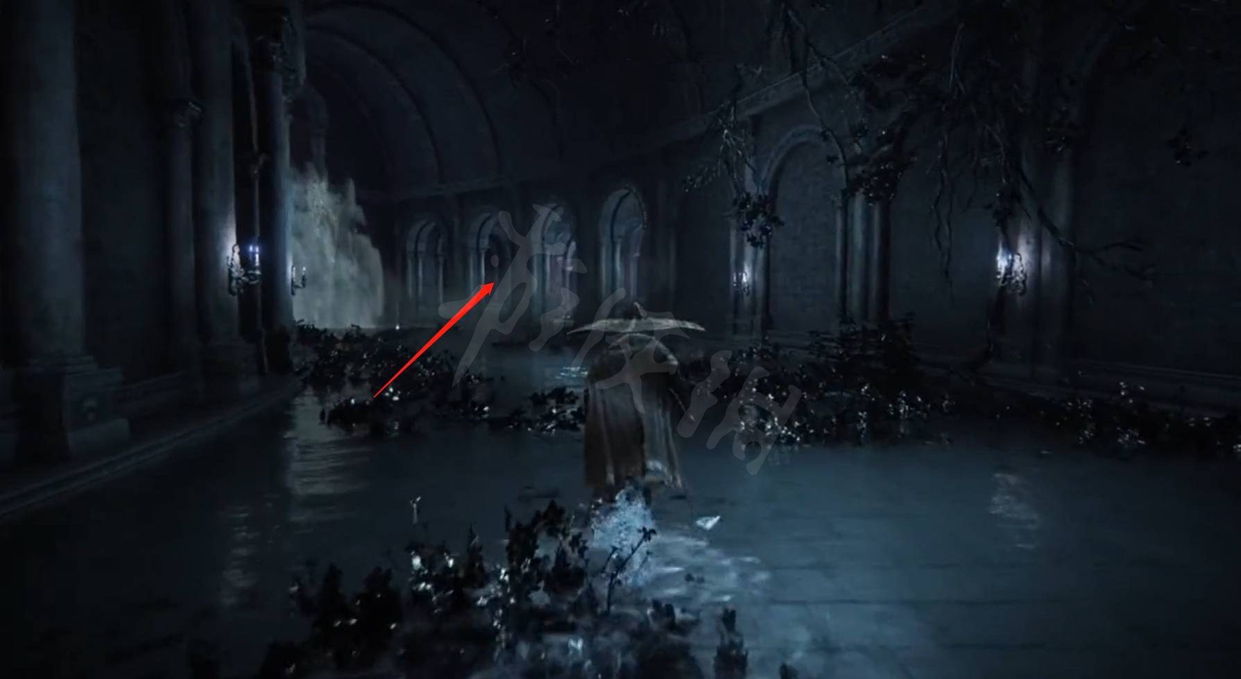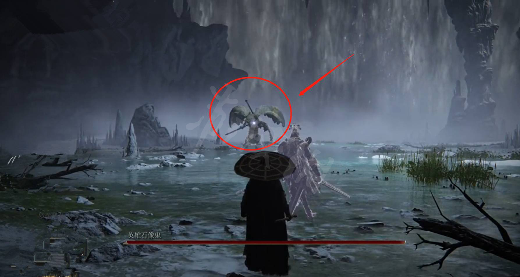 9、随后直走到阳台处,看到一个门后进入,继续直走到瀑布处,即可看见英雄石像鬼。