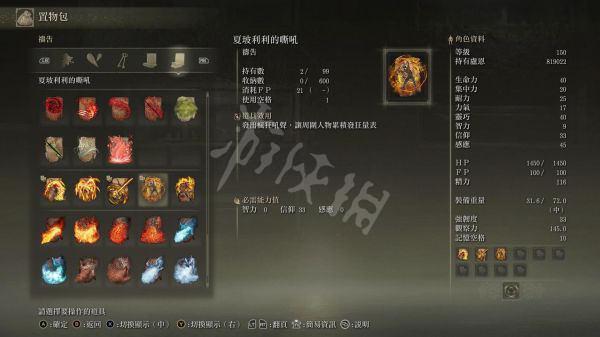 增加战技的伤害15%,它不能和战士壶的碎片一起带。你的癫火流如果不是放祷告,而是专注于维克战矛的话可以带这个,余火的伤害也会提升。
