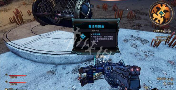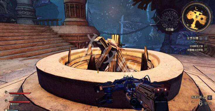 躲过献祭神殿的伏击,获得宝箱中的任务物品“魔法灰烬鱼”,将这只鱼放入装有木柴的火盆,射击木柴点燃祭祀火盆。