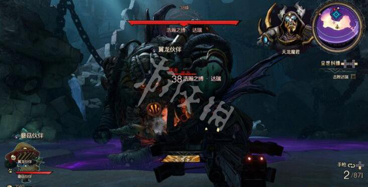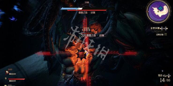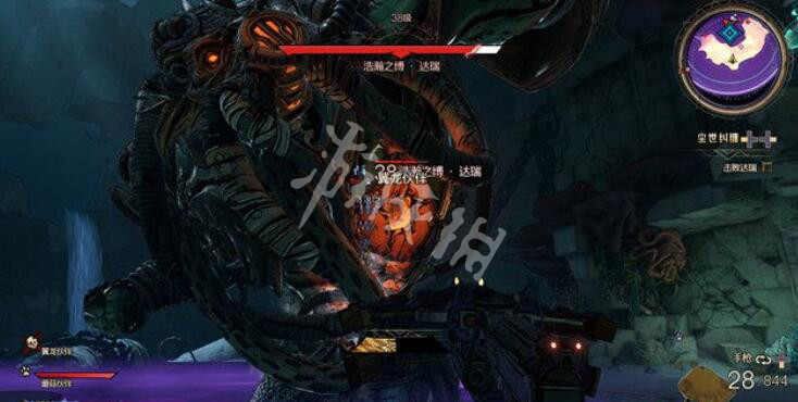 接下来你需要打败本关的BOSS“浩瀚之缚·达瑞”,这个BOSS打法比较简单,你可以尽可能使用破甲型武器(火箭筒,霰弹枪等)攻击它的正面,眼睛下方的弱点(金黄色核心)部位即可。