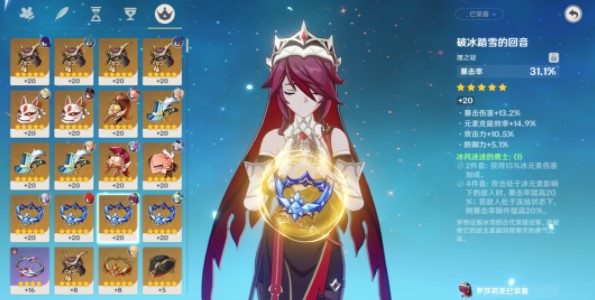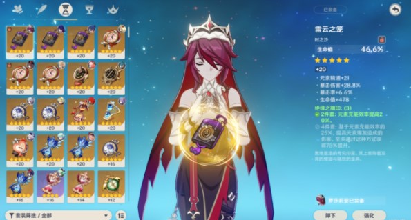 两件加元素充能效率,四件套加大招伤害,作为副c辅助,绝缘套是不二之选。