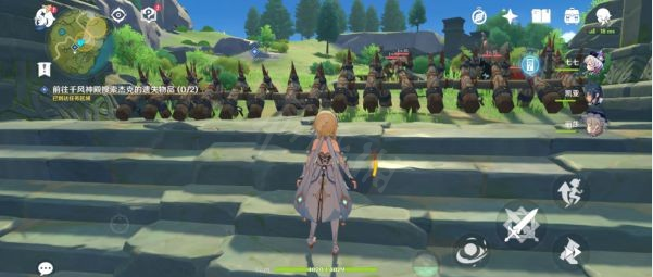 进入范围1会看到一排木桩,后面还有一群丘丘人,做掉他们。