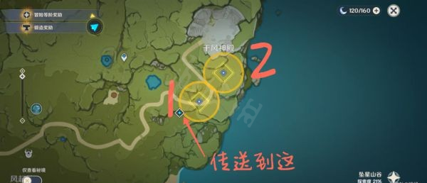下图是两个物品的搜索范围,先传送到千风神殿下方的秘境,然后进入范围1。