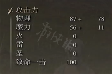 家人头连枷这个武器的伤害是比较低的,物理基础属性只有87,魔法攻击也是有56点,但灵巧加成达到了C级。