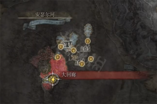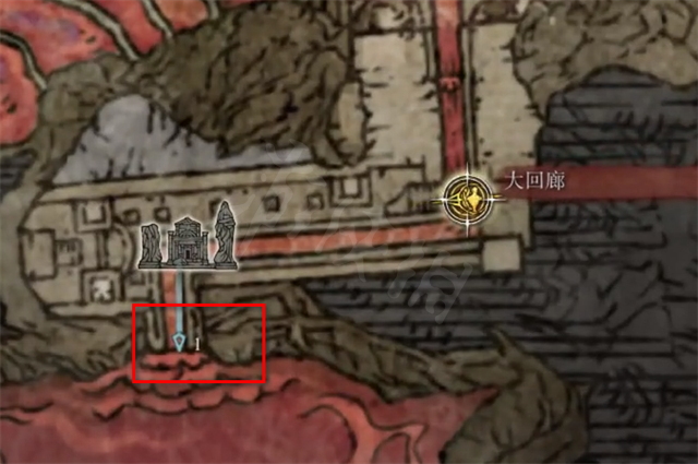 1、想要获得弃子的繁星这个武器,首先要传送到【大回廊】,然后从红框标注的位置进入boss位面;
