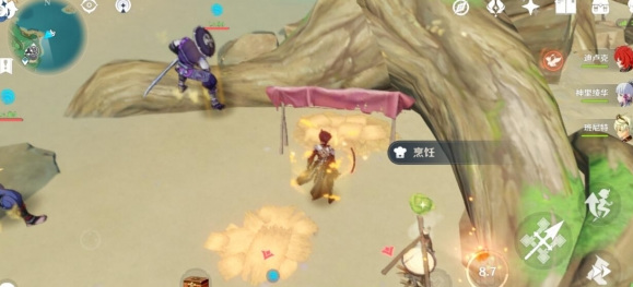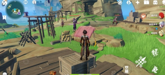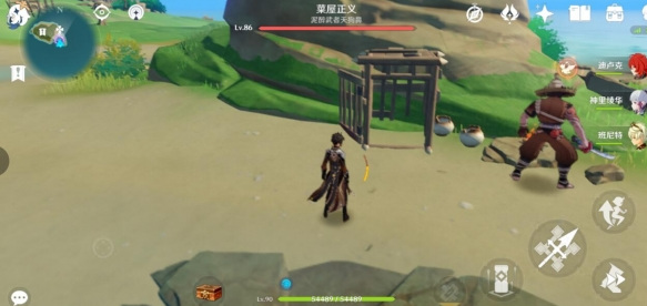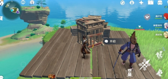 4、上到山顶会触发,先打怪,然后和二郎对话告诉你解救他的钥匙在哪里,然后会告诉你让你去打工,找四个石板。这时候任务就开始了,先来到这里,神里家右上房的浪船锚点。