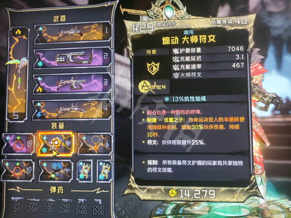 护盾附魔如图,坟墓的专属附魔,释放法术就能触发增伤,护盾词条要宠物伤。
