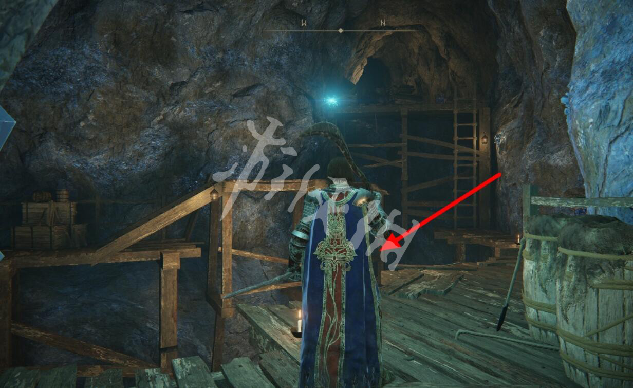 使用两把石剑钥匙打开小恶魔封印进入坑道。