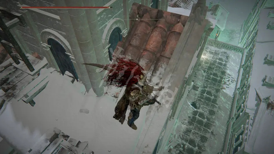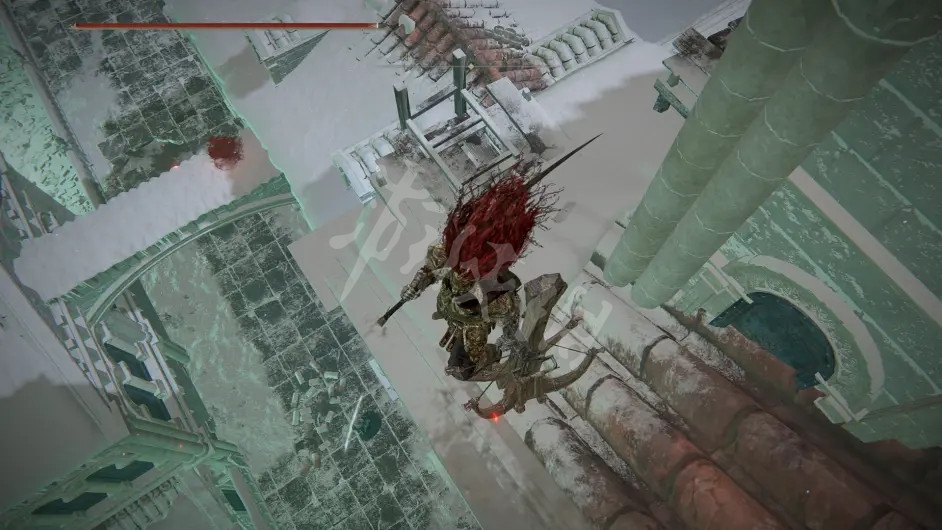 首先我们进入监牢后向正前方走,跳下平台再走一小段距离,右边能看见一小片废墟,从离我们远的一处断墙跳上去(这里不用太着急,狙击手的仇恨不会太快拉到你)上去之后一路润,注意不要掉下去,底下有个黑刀,有个梯子,爬上去就能点雕像了。