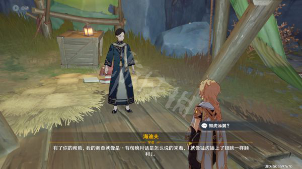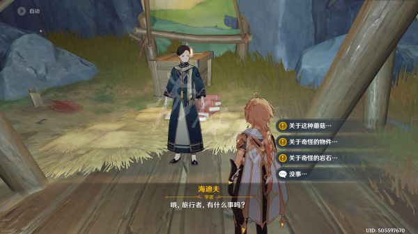 接着我们将采集好的8个星蕈交给海迪夫(选“蘑菇采回来了。”选项,其他两个是触发另外两个任务的选项)