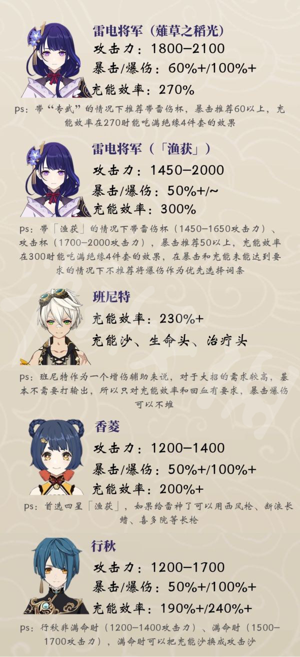 雷神E - 行秋QE - 班尼特Q - 香菱EQ - 雷神QAAA+重击