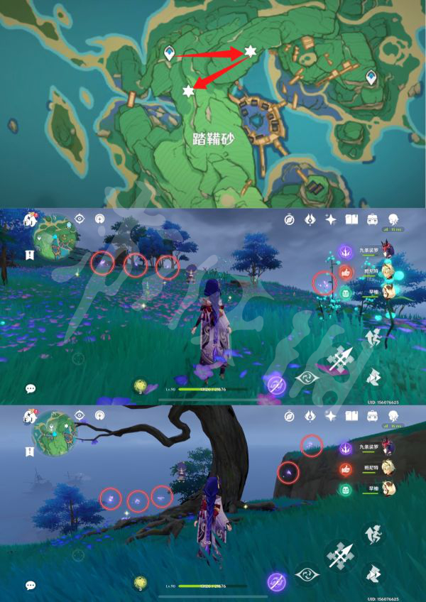 5)在如图踏鞴砂点位,一共9只晶蝶,按照图中路线即可