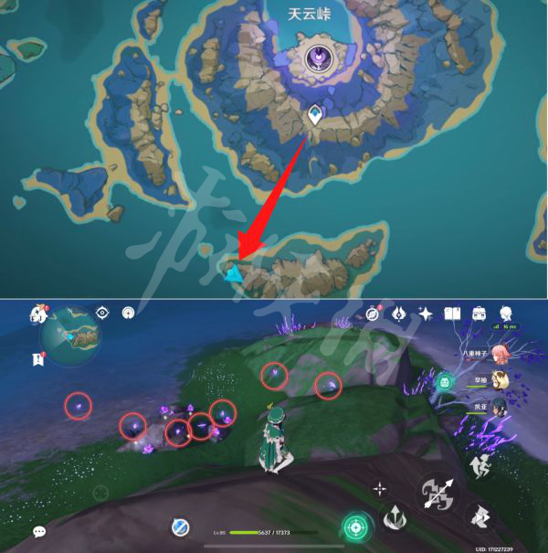 7)在天云峠地图最下方有7只晶蝶,此点位只推荐采集一次,比较远(长草玩家可以多来几次全部采集完)