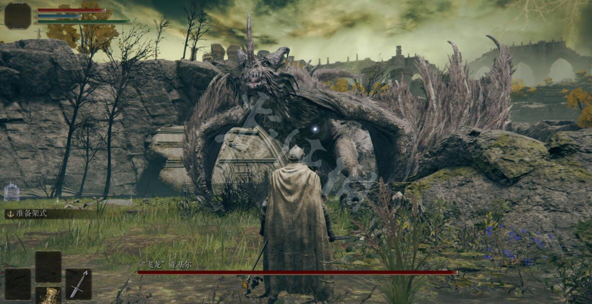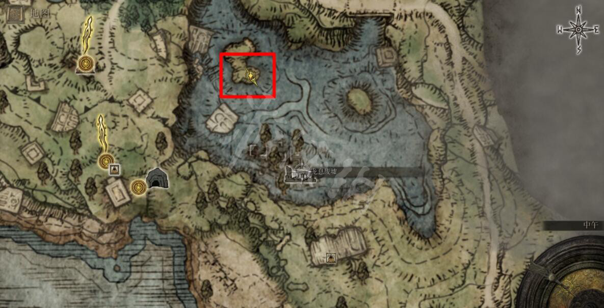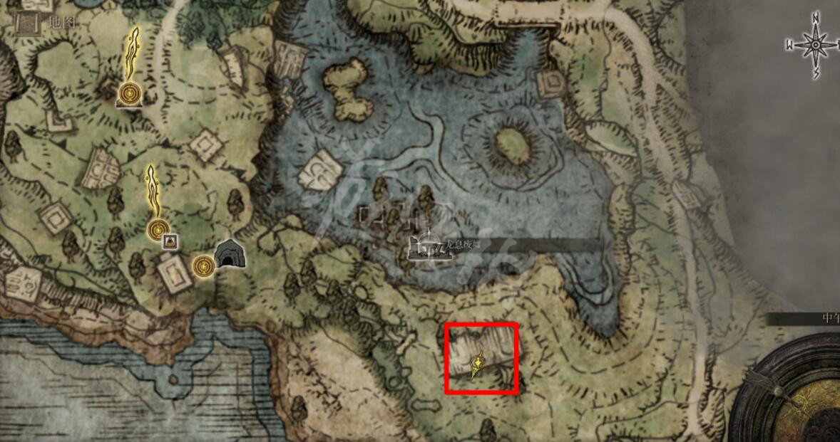 长牙需要通过NPC【尤拉】支线任务获得,首先来到宁姆格福【龙息废墟】南边的下图所示位置。