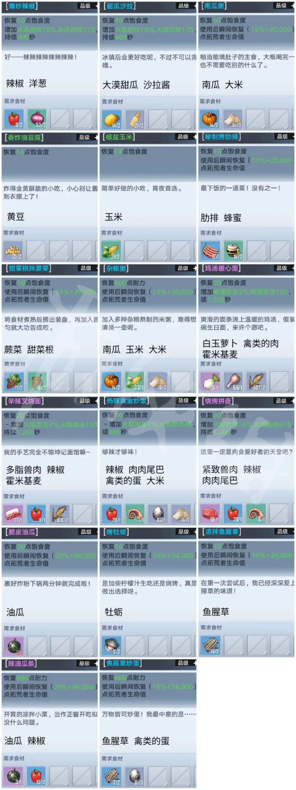幻塔2.0有哪些新增菜谱?许多小伙伴不知道幻塔2.0版本有哪些新的内容,增加了哪些菜谱。下面小编就带来幻塔2.0新增菜谱介绍,一起来看看吧。
