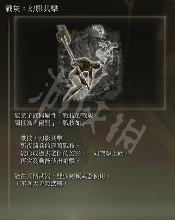 1.武器选择墓地大镰刀或大镰刀,大镰刀的灵巧补正比较高,但它本身面板比较低,灵巧点数要有一定的量,可能才会比较好,质变选择焰术,战灰用黑焰漩涡。