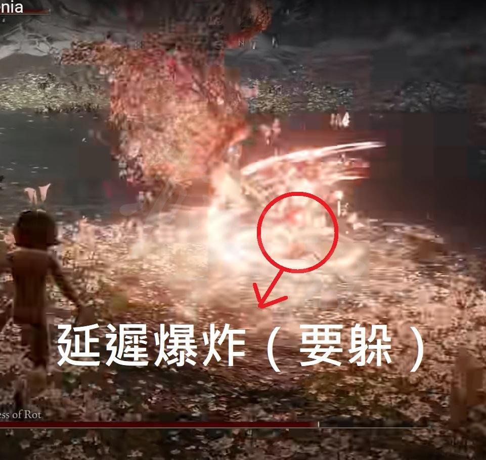 延迟爆炸:跳斩下来时,地面上会出现延迟爆炸,必须翻滚躲避,或是绕背安全平A两下。