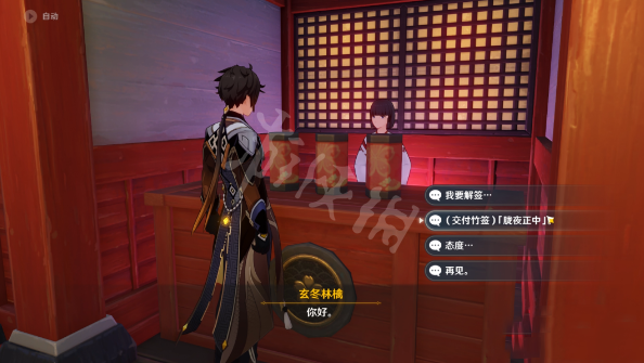 再到鸣神大社进行抽解签,会发现如图按钮须点击,会得到击败敌人的任务,完成第四个任务后,诡异的御神签任务就会开启。