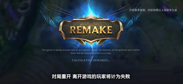 1.游戏开始时,如果有队友断连或弃赛,其他召唤师可以选择重开对局,重开对局不受任何惩罚,但弃赛、断连的召唤师将被记为比赛失败。重开对局功能还需要一段时间的测试,相信不久之后就能与召唤师们见面。