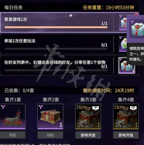 3、收集一定数量的道具后可以解锁对应奖励,集齐一套可以获得一个奖励,两套,三套和四套均可以获得一个奖励
