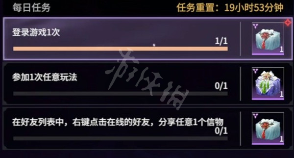 2、需要完成每天的指定任务才能获得信物,一般一天可以获得三个,也可以通过分享的按钮来获得信物,一天只能分享一次