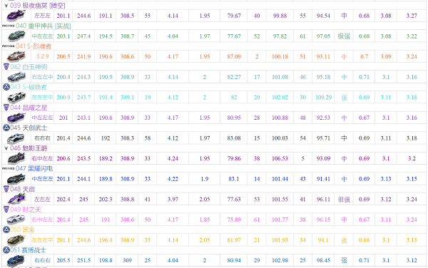 1、上图的排行榜就是目前63款A车里面最新的排行了,玩家可以参考一下。
