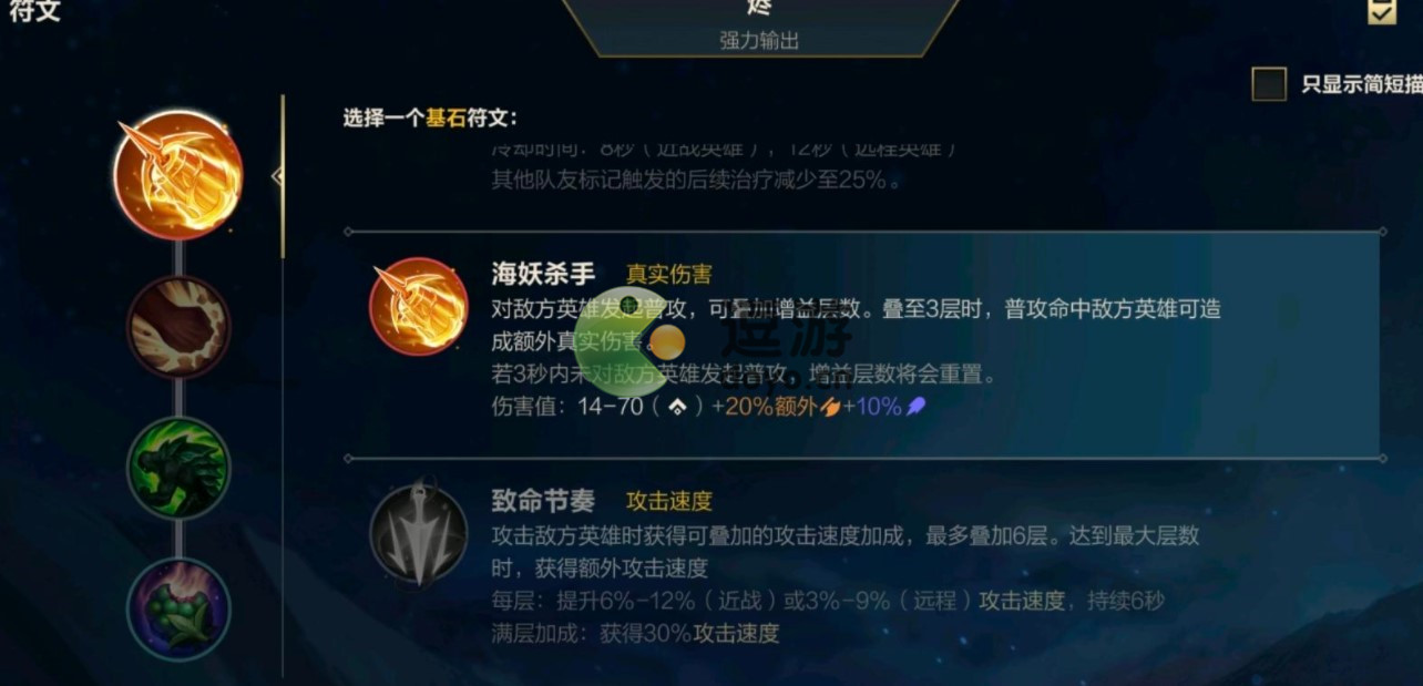 1.海妖杀手比较鸡肋,吃攻速的基本必带致命节奏,不吃攻速的带了也打不出几次,而且数值很低,带这个和带征服者的差距并不大。