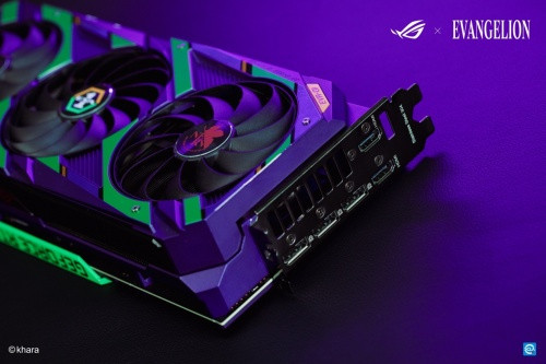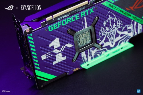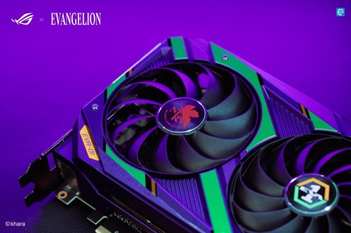 新世纪福音战士限量版显卡基于ROG STRIX的设计理念,联名外观同样颇具信仰~显卡将初号机的紫色和绿色融入原设计之中,配色高度还原了初号机的形象,紫色涂装的外壳下,交织着代表使徒的红色核心纹路,其间穿插有初号机上经典的绿色条纹,金属质感的外观设计展现出机体的超能一面!金属风质感的外观搭配了交错的纹理,展现出绝佳的制造工艺,质感拉满!