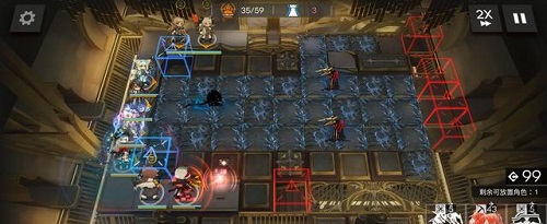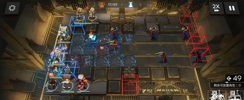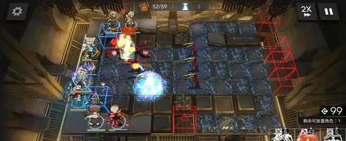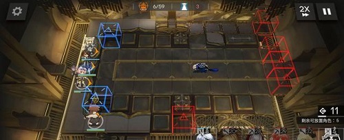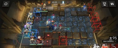 2、干员选择很简单,灵知必备,选择一技能,冻住BOSS是通关的根本和灵魂,红蒂是核心增伤辅助,必须要带,之后三大术士澄闪、小火龙和小绵羊全部携带二技能,铃兰和W也携带二技能,这两位也是控制的关键与核心,晕雷和减速效果极佳。最后建议补一个小刻,记得携带一技能的冰斧即可,如果觉得输出不够可以补一个狙击,这里尝试带肥鸭发现不行,随便来一个狙击就行,不局限于能天使。buff方面1、3、5蓝色,2、4是红色。
