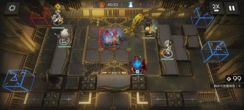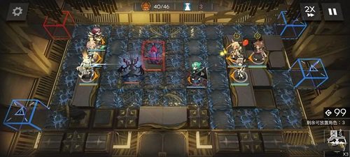 这一关的难点就是溟痕铺开速度极快,所以地面干员压力无比巨大,所以buff选择上,只有4号是蓝色,其他都是红色即可。输出主要是高台干员为主。