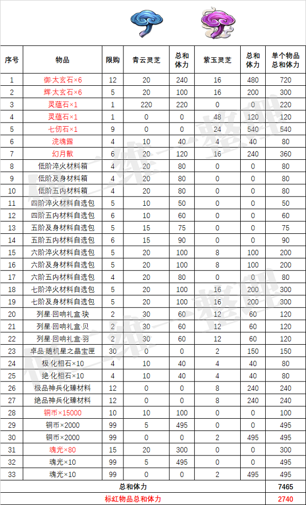 5.接着针对幻月散和浣魂露这两项资源来说,浣魂露的兑换性价比对比之前的活动其实还好,但幻月散的成本则有了较大的提升,这点也是维一有点不理解的,虽然兑换的数量上限也增多了,但单个兑换的体力需求却也增大了。