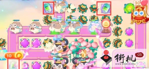 6、全图都可以放置炮塔,并且可以放在第二排,第一排会被冰冻兔冻住。