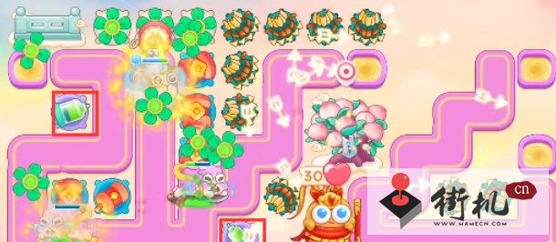 1、本关能够使用的炮塔是:毒针、风扇、鞭炮、多重箭、雷达,这一关我们选择风扇多重箭为主力输出。
