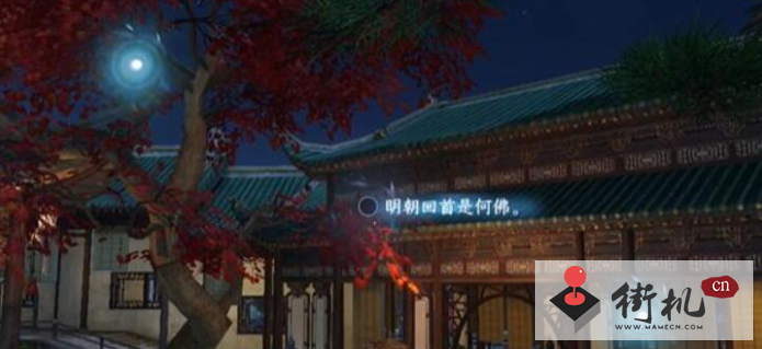 3、接着再随镜头移动点击中间光点以意象作出第二句明朝回首是何佛。