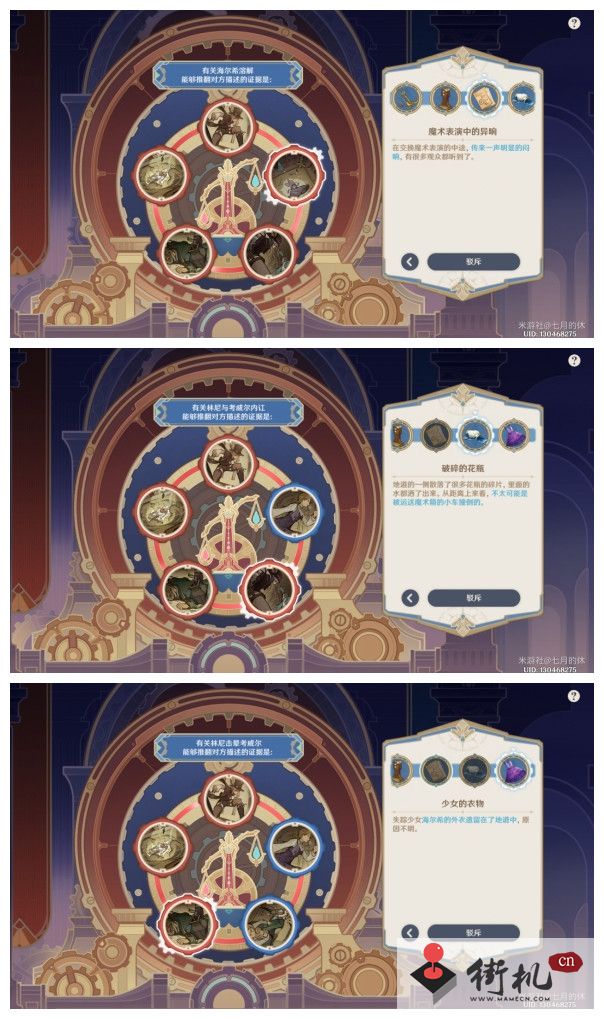 20、驳斥成功之后,继续任务剧情,然后选择线索【魔术表演中的异响】来驳斥水神。